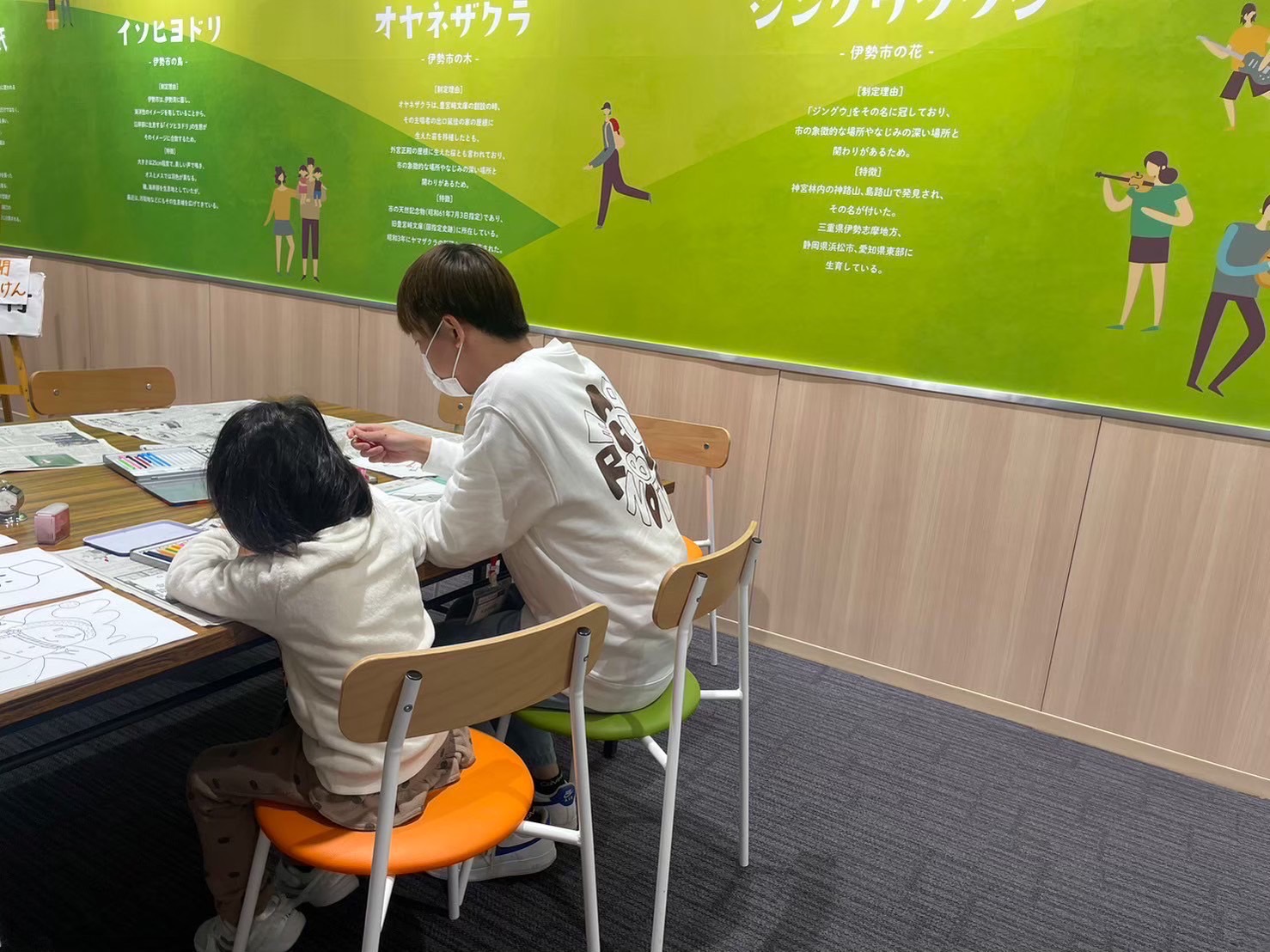 この写真は子どもといっしょに塗り絵をしている様子です✏️